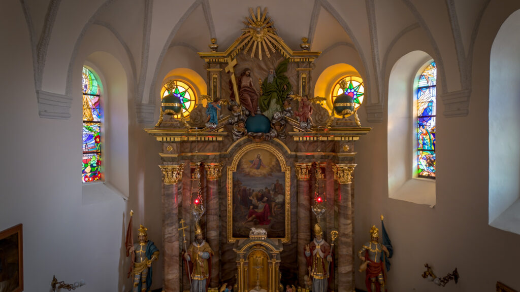 Ołtarze umieszczone po przeciwnej stronie nawy zostały wykonane w stylu rokokowym z obrazem św. Antoniego, a także w stylu barokowym z XVIII wieku z figurą Najświętszego Serca Pana Jezusa.